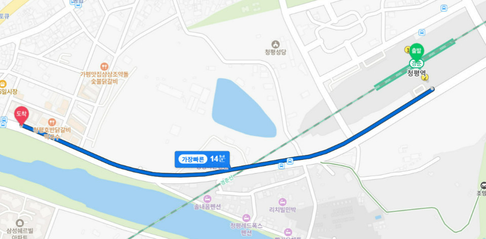 🚉 대중교통 이용 시 경춘선 청평역 하차 후 도보 약 15분 소요(청평역에서 택시로 이동하면 편합니다.)